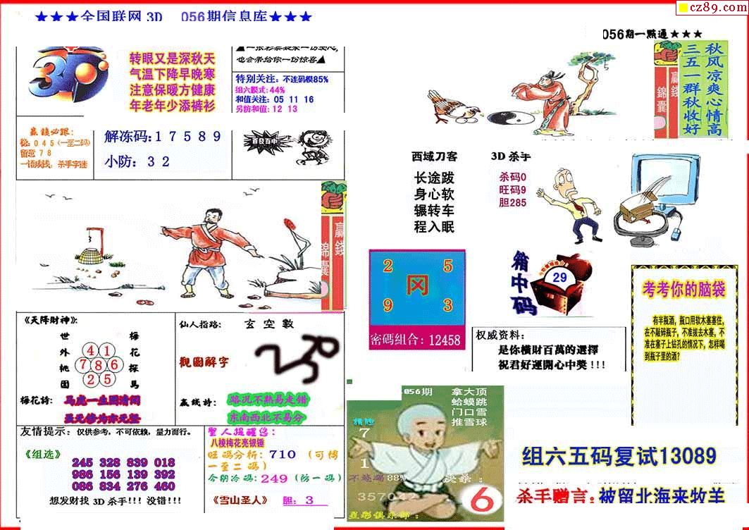 杀手+鑫马快报+字迷汇总26年056期3d图谜