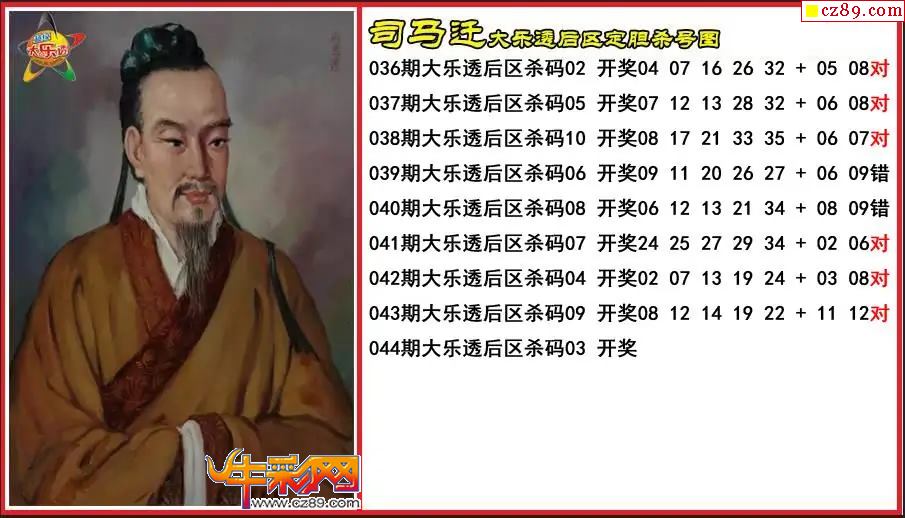 大乐透044期司马迁后区定胆杀号图