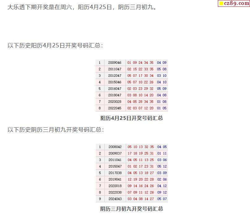 历史上的今天大乐透4月25日开奖号码汇总