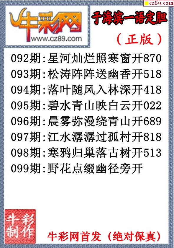 26年099期于海滨一语定胆(原创正版)